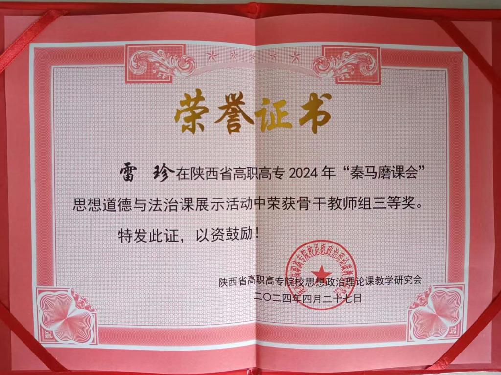 为进一步提升全省高职高专院校思政课教师教学能力,促进我省高职思政课高质量发展,4月27日,由陕西省委教工委指导,陕西省高职高专院校思想政治理论课教学研究会主办的陕西省高职高专2024年“秦马磨课会”“思想道德与法治”课程现场教学展示活动在西安职业技术学院举办,来自全省高职高专院校的130余名教师参加磨课,我校马克思主义学院6位思政课教师参会观摩。
