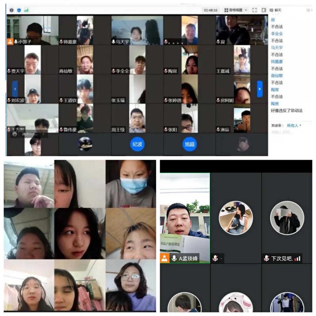 为全力保障疫情防控期间“停课不停教、停课不停学”,我校40余名专兼职思政课教师通过职教云、腾讯会议、学习通、微信群、QQ 群等技术手段,实施直播课、录播课、在线慕课辅导课及读书研讨课等不同形式的远程教学,基本形成了“教师在线授课+学生线下自主学习”的教学模式。老中青各年龄段教师克服种种条件和技术困难,把疫情的“危机”变成了改变教学模式的“契机”。