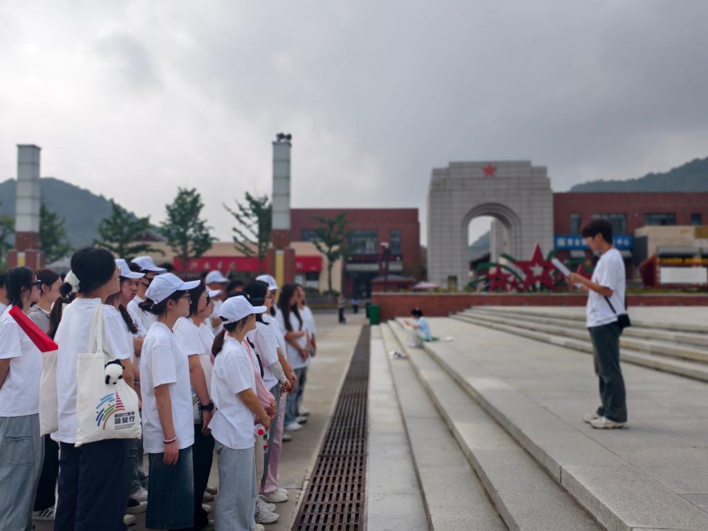 红色革命文化作为一笔宝贵的精神财富,蕴含着指引我们党和人民增强信仰、信念、信心,战胜一切强敌、克服一切困难、夺取一切胜利的强大精神力量。为深化和宣传学习成果,师生团队先后在陕甘边革命根据地照金纪念馆、甘泉雪地讲话旧址、延安宝塔山上组织开展“红星闪耀” “重走长征路” “为人民服务过时了吗”等主题宣讲,在宣讲中深刻领悟伟大历史事件背后的精神内涵,感受那段峥嵘岁月中的坚定信念与不屈斗志。第一场宣讲活动在陕甘边革命照金纪念馆广场展开,团队成员张泽宇站在五星桥下,以《红星闪耀,穿越时空的青春接力》为题展开,结合照金革命根据地的斗争历史,向在场师生与游客讲述刘志丹、谢子长、习仲勋等革命先辈用热血铸就信仰的故事,将书中“红军战士为百姓谋幸福”的初心,与新时代青年在乡村振兴、科技创新中的担当相结合,用鲜活案例诠释“红星精神”的传承。第二场宣讲活动在甘泉雪地讲话旧址开展,团队成员彭文盈以毛泽东同志在此对长征的经典总结“长征是宣言书,长征是宣传队,长征是播种机。”为切入点,结合此次实践活动感悟,生动讲述了长征的艰辛历程和深远的历史意义,引导现场师生深入理解新时代传承长征精神的重要性,坚定走好新时代‘长征路’的信念。在延安县委旧址,师生团队的系列红色主题宣讲活动,将历史现场变为“活课堂”,让师生团队成员在沉浸式学习中深化了对革命精神的理解。